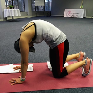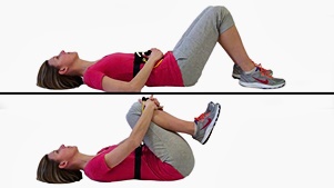 먼저 바닥에 편안하게 앉습니다. 이후 농구공만 한 둥근 물체를 발목과 발목 사이에 끼워 넣습니다. 상체를 뒤로 젖히고 팔꿈치를 바닥에 대어줍니다. 그 상태로 다리를 45도 각도로 들어 올립니다. 이후 발끝을 쭉 펴고 자세를 유지합니다. 숨을 내쉴 때 두 발목을 농구공 쪽으로 조여줍니다. 숨을 들이쉴 때 두 발목을 이완시킵니다.