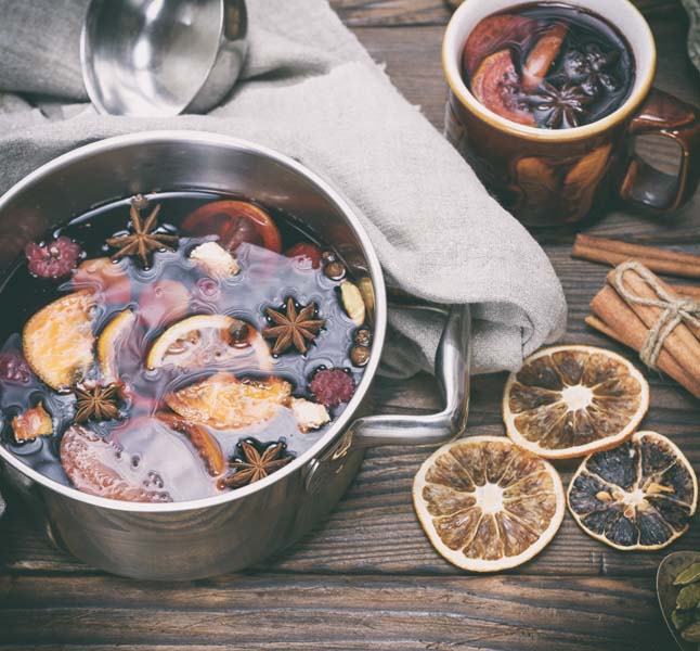 뱅쇼를 마실때는 여러가지 레시피가 있기만 향기로운 향신료, 감귤류 과일, 브랜디 한잔 또는 럼주 한잔을 넣고 천천히 부드럽게 데우는 것이 중요합니다. 개인적으로 오렌지주스와 갈색 설탕을 첨가하면 깊고 풍부한 맛을 냅니다.