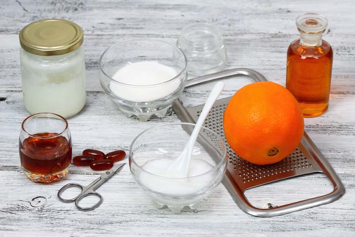 중소형 용기에 설탕 1컵과 기름을 1테이블 스푼 넣고 섞어 줍니다. 이후 약간을 레몬즙을 첨가하여 샤워가 끝난 후 설탕 스크럽을 몸 전체에 발라줍니다. 바를 때에는 원을 그리며 천천히 부드럽게 발라주면 좋습니다. 가장 좋은 결과를 얻으려면 먼저 욕조에 20분 간 몸을 담그는 것이 도움이 됩니다.